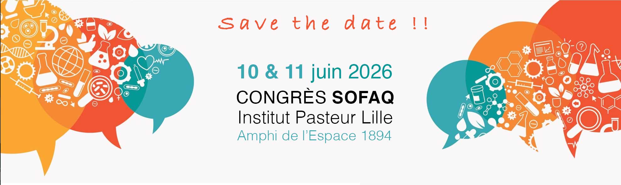 Le prochain congrès de la SOFAQ sera organisé les 10 et 11 juin 2026 à l’Espace 1894, au sein du centre de recherche de l’Institut Pasteur à Lille.