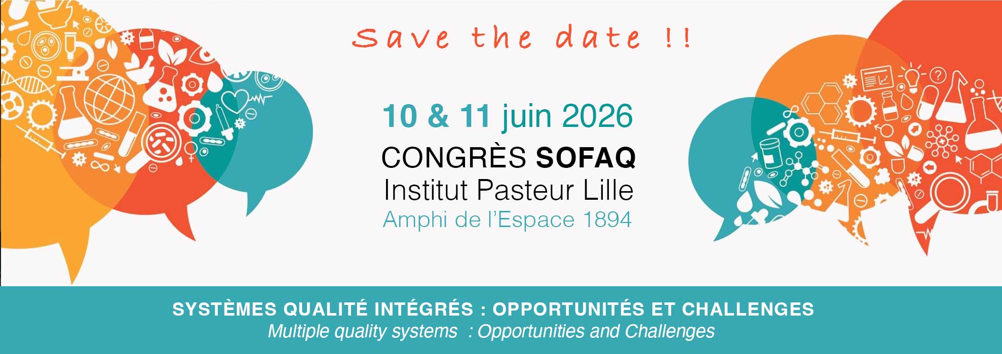 Le prochain congrès de la SOFAQ sera organisé les 10 et 11 juin 2026 à l’Espace 1894 au sein du centre de recherche de l’Institut Pasteur à Lille.